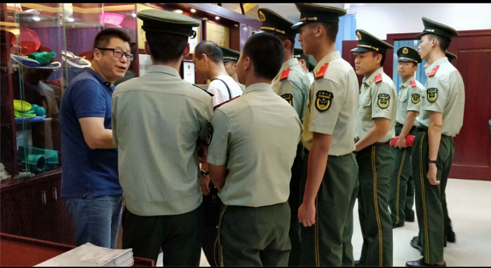 四、邵武武警大隊官兵一行在建黨97周年之際到遠翔新材參觀交流,增進軍民融合。 公司總經理王承日為武警官兵們介紹企業生產運行情況以及非公企業黨建工作的發展.